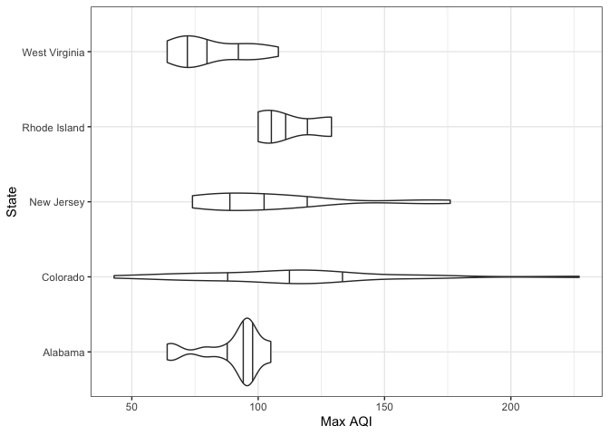 geom_violin(aes(x = `Max AQI`, y = State), draw_quantiles = c(.25, .5, .75)) +