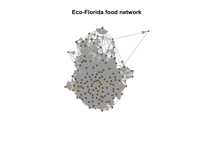 plot(g, vertex.size = 3, vertex.label = NA, main = "Eco-Florida food network")